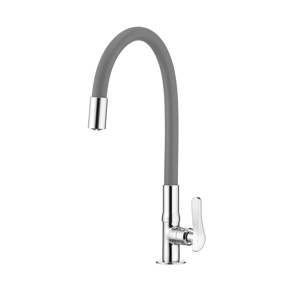 O grande destaque é a Bica Flexível (Revestimento em Silicone Cinza - GRAY), que permite direcionar o jato para qualquer ponto da cuba ou pia, facilitando a lavagem de utensílios grandes e cubas duplas (mobilidade 360°). A cor cinza é versátil e confere um visual discreto e elegante.